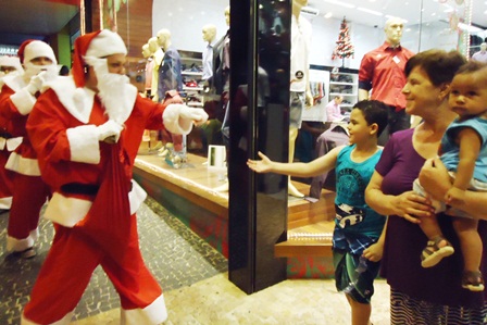 Papais Nois distribuem doces e movimentam centro comercial |