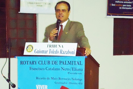 Os rotarianos que fazem parte do Rotary Club de Palmital, no Distrito 4510 de Rotary International, na regio oeste do interior do Estado de So Paulo, comemoraram no ms de abril mais um aniversrio do clube, que completou 60 anos de atividades na cidade. Para celebrar a data, o presidente do clube, o empresrio Francisco Catalano Neto, programou uma srie de palestras sobre a organizao mundial, nos encontros semanais. A proposta fazer com que os associados e demais convidados passassem a compreender melhor o Rotary e a Fundao Rotria, disse o dirigente que durante mais de um ms convidou autoridades rotrias para fazerem parte da programao de aniversrio.