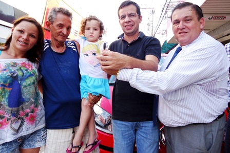O contemplado com o carro zero quilmetro foi Moacir Baldecera, que efetuou uma compra na loja Castelo dos Doces, e foi atendido pela vendedora Eliete. Os trs ganharam prmios, disse Libnio Victor Nunes de Oliveira ao apontar: o carro zero quilmetro para o consumidor, um televisor de 32 polegadas para a comerciria e um tablet para o lojista. No segundo prmio a consumidora Carolina Felix dos Santos ganhou uma aparelho televisor de Plasma com 43 polegadas, enquanto que o vendedor Domingos, da Casa das Louas, recebeu um aparelho BluRay. Rozene Toninato da Silva foi sorteada com um televisor de 32 polegadas, enquanto que a vendedora Monique, do Amigo Supermercado receber um aparelho BlueRay. Aroldo R. Cardoso receber como prmio uma mquina de lavar roupas, e o vendedor Auro, da Casa Sol receber um aparelho BluRay. O quinto prmio saiu para Eduardo Matias Jacinto, que receber um refrigerador, enquanto que o vendedor Valter, da Casa Sol, receber um aparelho BlueRay.