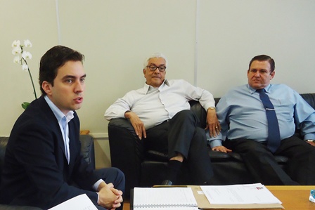 Prefeito Vinicius Camarinha explica ao presidente da Acim, Libnio Nunes, como ser o servio de varrio mecnica |