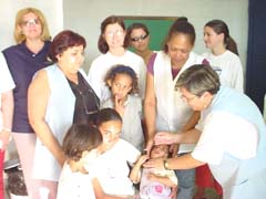 Os integrantes do Rotary Club Marlia Pioneiro estiveram no ltimo sbado auxiliando a Secretaria da Sade, na campanha nacional de vacinao infantil. O grupo de rotarianos se reuniu no Jardim Santa Paula, no Lar de Menores Caibar Shultz, o Barraco, estimulando os pais a levarem os filhos menores de cinco anos de idade, para mais uma dose da vacinao infantil contra a poliomiolite. O objetivo foi de atrair o maior nmero de pessoas possveis e conscientiza-la sobre a importncia da vacinao das crianas, disse a presidente Glria Miller, que montou um esquema de rodzio entre os rotarianos para que eles acompanhassem a vacinao das 8 s 17 horas.