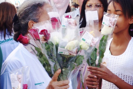 Numa parceria com a Unimed Cooperativa de Trabalho Mdicos 700 botes de flores sero entregues nas principais ruas do centro comercial da cidade, no perodo da noite, bem como no Lar do Idoso Antnio Frederico Ozanan. Essa parceria com a Unimed e Polcia Militar acontece todos os anos, e o pessoal aguarda a distribuio de rosas, ressaltou a dirigente pompeense que considera o ato bastante simptico e que as consumidoras contam com isso. Homens nos procuram para ganharem um rosa para levar pra casa, lembrou a presidente da ACE de Pompeia. E aproveitam para entregarem ou para a me ou para a esposa, completou a dirigente que considera importante a manuteno desta ao. to boa que no tem como parar, disse ao agradecer a Unimed e a Polcia Militar pela manuteno da parceria.