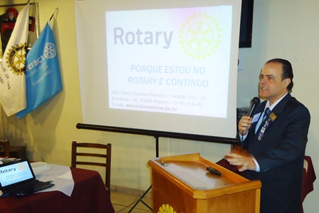 Outro ponto observado pelo expositor foi quanto a inteligncia em explorar o potencial de cada associado. Geralmente os clubes nivelam as tarefas, o que nem sempre apresenta bons resultados, pois cada associado tem um potencial diferente do outro, falou Mrcio Medeiros ao citar exemplos prticos. O ideal explorar o potencial, e no a deficincia do associado, afirmou ao lembrar que preciso explorar as habilidades profissionais de cada associado em benefcio dos programas do Rotary ou da Fundao Rotria. O rotariano tem que oferecer o tempo, o conhecimento e as habilidades profissionais para o Rotary, disse ao lembrar que para a Fundao Rotria a ajuda atravs da contribuio financeira. So duas organizaes diferentes e distintas, comparou o convidado que esteve como Governador do Distrito 4510 do Rotary International, na gesto 2011-12.