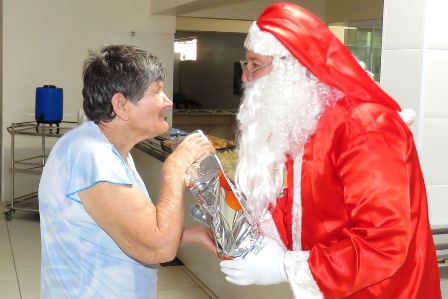 A celebrao do Natal entre os pacientes moradores do Hospital Esprita de Marlia (Hem) e Clnica Aconchego foi de muita alegria entre funcionrios, diretores e pacientes, que contaram, inclusive, com a visita do Papai Noel, para a entrega de diversos presentes doados por voluntrios do hospital. sempre uma alegria e emoo fortes quando realizamos a nossa confraternizao com eles, disse o presidente da diretoria, Vicente Armentano Jnior, que promove anualmente o encontro de forma simples, mas de grande significado. Ficamos mais de um ms preparando esse encontro com todos, disse o dirigente satisfeito com o resultado conseguido.