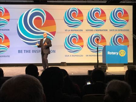 O presidente eleito do Rotary International, Barry Rassin, que assumir o cargo somente em Julho deste ano, apresentou na abertura da Assembleia Internacional da organizao mundial, em San Diego, Califrnia, Estados Unidos, o lema rotrio que servir de motivao para a prxima gesto rotria, 2018-19, durante os 12 meses. Seja a Inspirao, o lema que substituir o atual O Rotary faz a Diferena, apresentado para 534 Governadores Eleitos do Rotary International, presentes no evento de treinamento e capacitao, de 14 a 20 de janeiro, nas dependncias do Manchester Grand Hyatt. Peo-lhes que sejam a inspirao para seus pases e comunidades, disse o futuro lder mundial. Que estejamos mais fortes para tomarmos medidas que criem mudanas duradouras na comunidade, reforou o dirigente.