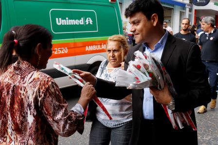 Visando proporcionar uma melhor recepo as mulheres que estiveram circulando pelos principais corredores comerciais da cidade de Marlia, a diretoria da Associao Comercial e Industrial (ACI) de Marilia renovou parceria com a Unimed de Marilia e Tiro de Guerra, para a distribuio de oito mil botes de rosas, para as mes que estiveram no sbado, dia 11, no perodo da manh entre as lojas da cidade. Um gesto de carinho, afinal, a mulher representa a sensibilidade e a forma angelical de enxergar a vida, disse o presidente da associao comercial mariliense, Adriano Luiz Martins, que h anos participa desta atividade que comeou em 1996 e se mantm at os dias de hoje. Inclusive esta ao pioneira copiada em diversas outras cidades do Brasil, ressaltou o dirigente de Marlia feliz com a manuteno da ao na cidade.