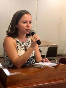 Camila Rodrigues da Silva, explica em reunio ordinria do Rotary Club de Marlia, como ser o aulo domingo. |