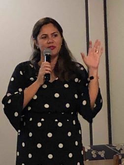 Maricler Botelho de Oliveira, do Rotary Club de Marlia-Pioneiro, mobiliza os rotarianos para a caminhada |