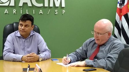 Adriano Luiz Martins e Jos Augusto Gomes, ambos da associao comercial, preparam evento sobre recuperao de crdito |