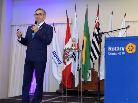 Marcos Antnio Carchedi, Governador do D4510 do RI, far a conferncia rotria mostrada na TV |