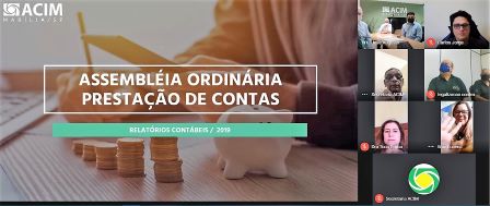Associados que participaram da Assembleia Virtual Ordinria da Associao Comercial e Industrial de Marlia, aprovaram o parecer do Conselho Fiscal sobre a prestao de contas do exerccio de 2019 com louvor. Os nmeros, documentos e certides foram apresentadas aos associados que tiveram a oportunidade de questionar ou exigir apresentaes de outros documentos, em encontro realizado pela primeira vez de forma virtual, seguindo os protocolos de preveno, de acordo com o Decreto Estadual que no permite encontros sociais em decorrncia da pandemia do Covid-19. Foi um encontro prtico, objetivo e participativo, resumiu o presidente da diretoria executiva, Adriano Luiz Martins, que considerou o encontro vlido e importante. Nos adequando a realidade atual e ao mesmo tempo seguimos o que descreve o nosso estatuto, falou.