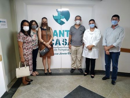 Encontro entre representantes da Santa Casa de Pompeia com a do Hospital das Clnica de Marlia aconteceu na unidade de sade pompeiana, para a continuidade das tratativas de parceria que esto em fase final de negociao, para a ampliao no atendimento de ambas as instituies, seja na cidade de Marlia ou de Pompeia. O Hospital das Clnicas por ser uma referncia em sade pblica em nossa regio, sem dvida vai nos orientar no sentido de melhorar, ainda mais, o nosso servio na comunidade de Pompeia, disse Alair Mendes Fragoso, provedor da Santa Casa de Pompeia, que ao lado de: Bernadete Helfstein Fragoso, Andreia Lopes Pereira e de Claudemir Bolfi, eles recepcionaram o pessoal do Hospital das Clnica de Marlia: Snia Custdio e Paloma Libnio, que estiveram conhecendo as novas e futuras instalaes do hospital pompeiano.