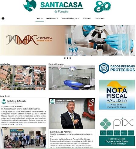 Na pgina principal do portal j tem demonstrao sobre a Nota Fiscal Paulista, bem como a doao por PIX, com valores sugeridos de: 30, 50, 100 ou 200 reais, ou qualquer outro valor. Isso pode ser uma doao identificada ou no, falou ao abrir para pessoas fsicas e jurdicas. Estamos reunindo fotos antigas para serem apresentadas junto a fotos atuais, bem como a parte histrica do nosso hospital que muito interessante, disse ao acreditar que nos prximos dias isso ser possvel. As notcias, as fotos, os histricos e as ferramentas de doao espontnea, certamente daro um dinamismo bastante grande ao nosso portal, que crescer com o tempo de acordo com a demanda e disponibilidade, disse o dirigente confiante neste projeto, lanado em Novembro de 2019, e que passar por modernizao e atualizao. No mundo virtual tudo tem que ser dinmico e gil, falou o provedor da Santa Casa de Pompeia. Temos que contar com todas as ferramentas possveis, enfatizou Alair Mendes Fragoso.