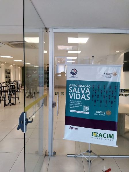 Banner da campanha nacional do Rotary: Informao Salva Vidas, tambm na associao comercial de Marlia |