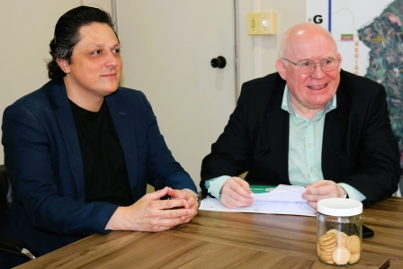 Carlos Bitencourt e Jos Augusto, ambos da associao comercial, preparam o natal deste ano no comrcio mariliense |