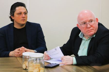 Carlos Bitencourt e Jos Augusto Gomes, ambos da associao comercial, falam da retomada dos sorteios com prmios |