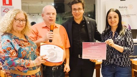 Felipe Gonalves Ragassi Orlando solicitou as presenas das companheiras: Snia Regina Cappi Janine e Cristiane Aparecida Tinetti, que desenvolveram esta ao nas duas escolas estaduais de Vera Cruz, seja na Castro Alves ou na Dirce Beluzzo. Foram aes quase que mensais, se revezando estre as escolas, com atividades das mais distintas, disse o presidente ao agradecer pessoalmente a dedicao de ambas. A Snia j havia nos informados sobre o certificado que ela recebeu, por fazer parte da Equipe Distrital, e este certificado ao clube, complementa a nossa alegria, falou Felipe Gonalves Ragassi Orlando que finaliza a gesto 2023-24 com seis certificados recebidos pela Governadoria Distrital por aes desenvolvidas de forma bem sucedidas. Desde a gesto passada nos envolvemos nesta ao, mas nesta gesto fomos mais profundos, ressaltou.