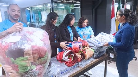 Funcionrios da associao comercial se mobilizaram para reunir roupas e cobertores e levaram pessoalmente ao Fundo Social |