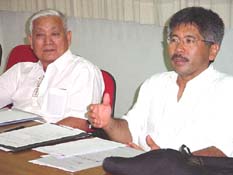 Yoshimi Shintaku e Keniti Muzuno, tratando de detalhes sobre a organizao do Sushi Fest |