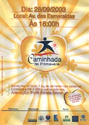 Com objetivo de promover a prtica esportiva da caminhada entre a populao da cidade, entidades e instituies promovem a 5a Caminhada da Primavera. A caminhada ser dia 28 de setembro, na Avenida das Esmeraldas, a partir das 16h. Na prxima semana, os responsveis pela organizao do evento se renem para definio dos ltimos detalhes da caminhada. Nelson Feitosa, representante da Emdurb na organizao do evento disse que a caminhada vai contar com participao de profissionais da rea mdica e paramdica da cidade.
