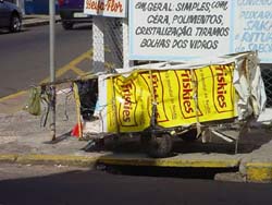 Carrinhos de catadores de papel disputam espao nas caladas, trancados de forma irregular |