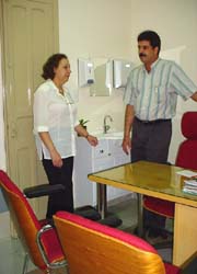 O mdico Jos de Freitas Guimares Neto e a mdica Ktia Ferraz Santana, mostram um dos novos consultrios da Oncologia |