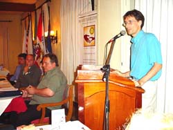 Dominic Barte, do CNVBrasil, fala em reunio do RC Marlia Pioneiro |