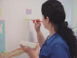 As artistas plsticas: Rosana Cristina Giolo Caversan, Leilla Alves Silva, Ana Maria Massud e Marlia Siqueira, esto na Santa Casa produzindo desenhos com temas infantis em todo o Pavilho Infantil que ter clima especfico para as crianas em todos os departamentos criados. So desenhos variados com temas e personagens conhecidos e com muitas cores em tons pastis, disse Rosana Cristina Giolo Caversan, que criou o grupo de voluntrias para promover a decorao infantil. Alm de desenhos, existiro frases e mensagens positivas, de paz e que envolva a criana, explicou.
