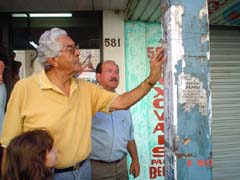 Srgio Lopes Sobrinho e Valdomiro Paes passeiam pela rua So Luiz, no centro da cidade |