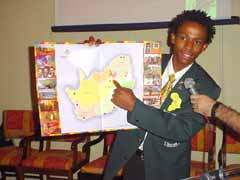 A cidade de Merafong conta com aproximadamente 300 mil habitantes e tem na extrao de ouro sua principal atividade com as minas de extrao, que chegam a se instalar a mais de 5 quilmetros de profundidade. Existem situaes que o cho estremece por causa das exploses das minas, comentou ao mostrar um vdeo detalhado, bem como fotografias e material confeccionado para demonstrao da cidade e do Pas. Hoje vivemos um momento melhor, porm com as mesmas dificuldades do que em qualquer outro Pas, sobre as desigualdades sociais, comentou ao mostrar dados em que apresenta nmeros sobre a economia e a situao poltico-social da cidade e do Pas. J houve uma poca em que a situao era bem pior, disse.