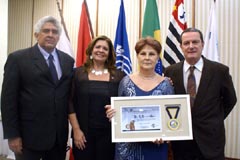 Rubens Silvado, Leila Silvado, Vera Gels e Paulo Gels, na entrega da Medalha do Pioneiro |