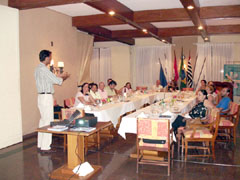 Na opinio do palestrante os agentes comunitrios so as principais ferramentas nesta campanha contra o mosquito e os criadouros. A linguagem da campanha organizada pelo Governo Federal est equivocada, disse o Secretrio Municipal do Verde e Meio Ambiente ao descordar da frase: voc e a gua no podem ficar parados. Sifes, piscinas, vasos, suporte de plantas, e ralos so os principais focos da doena, disse Mrio Csar Marques para o espanto de muitos rotarianos. O objetivo da campanha acabar com os criadouros, falou por diversas vezes. As larvas so os nossos inimigos e no apenas o mosquito fmea, comentou ao mostrar fotos, dados estatsticos, depoimentos e mapas sobre o desenvolvimento da doena na cidade. Se a epidemia no acabar, vai chegar o momento em que no haver estrutura para atender toda a demanda, alertou. J no est havendo, completou.