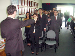 Foram 18 novos profissionais do Direito e cinco bacharis que receberam a habilitao como estagirio. Marcus Vinicius Teixeira Borges foi quem representou o grupo e fez a leitura do juramento da profisso que foi repetida por todos os recm profissionais. A partir deste momento vocs deixam de ser universitrios e passam a ingressar na profisso mais bonita do Brasil e do Mundo, disse o tesoureiro da OAB de Marlia, Dlvaro Girotto. Fazemos parte de uma classe que tem uma influncia muito grande na sociedade de uma maneira geral, afirmou ao colocar a OAB entre as instituies de maiores poderes de influncia do Pas.