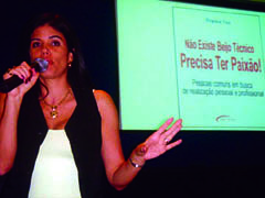 Neste dia 29 as atividades comearo a partir das oito horas com o credenciamento de todas as participantes. s nove horas ser apresentada uma pea de teatro de 50 minutos com o tema: O conto A secretria. A apresentao ser dos artistas que fazem parte da Companhia dos Arteiros. Por volta das 11 horas comear a palestra: Paixo pelo que faz, com a consultora Regina de Toledo Guimares Vaz, especialista em Recursos Humanos, e autora dos livros: Vamos discutir a relao?, e No existe beijo tcnico. Precisa ter paixo.
