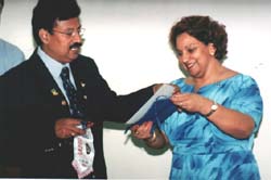 Na apresentao dos indianos na sede do Rotary Club Marlia Leste, cada membro da comitiva procurou mostrar um pouco das atividades profissionais que desenvolvem na ndia. O lder do grupo estrangeiro, o contador Vijayan, falou um pouco do aspecto scio-poltico da ndia, atravs de dados estatsticos e de fotografia. Alm desta apresentao, o contador indiano mostrou um pouco do trabalho do Rotary Internacional no pas dele, principalmente na cidade em que ele atua como rotariano. Este tipo de evento importante pois nos d uma viso mais ampla das aes rotricas fora do Brasil, disse Cristina Bondezan, que assistiu a apresentao do grupo indiano e gostou de ver a apresentao do colega arquiteto. Foi uma oportunidade de ver a arquitetura da ndia e trocar idias com o Genesh, que arquiteto como eu, disse a integrante do Rotary Club Pioneiro.