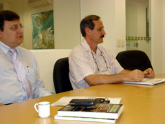 Jos Mansur e Cyro Siriani, do Conseg-centro, definindo as primeiras aes de orientao ao ciclista |
