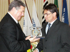 Hederaldo Joel Benetti entrega o trofu Rotary Club Marlia de Dirceu, para Carlos Barion, da ACC |