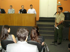 Graduado pela Escola de Formao de Sargentos das Armas, na unidade do 20 Grupo de Artilharia de Campanha Leve, em Barueri (SP), Ademar Gladis Rodrigues fez um breve relato da histria dos anos 60 no Brasil, mostrando a evoluo dos tempos e os ensinamentos que aqueles anos promoveram para a sociedade brasileira. O Dia 31 de maro um dia para reflexo, disse o militar. Vamos pensar em nosso passado, o nosso presente e a grandiosidade do nosso futuro como nao livre, soberana e, sobretudo, socialmente justa, disse ao falar para advogados, representantes dos Poderes Legislativos e Judicirios convidados.