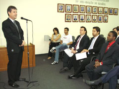 Estiveram presentes nestes eventos os ex-presidentes: Joo Fernandes More e Jlio Csar Brando, bem como a diretoria da OAB local e o Conselheiro Regional da OAB, Antnio Carlos Roseli. Foram 12 novos profissionais habilitados, que superaram um importante obstculo que a aprovao do Exame da Ordem, justificou Carlos Mattos ao lamentar dos baixssimos ndices de aprovao ao exame na ltima semana. mais um motivo de orgulho ao receber esta carteira que comprova o esforo e a dedicao aos conhecimentos jurdicos, falou.