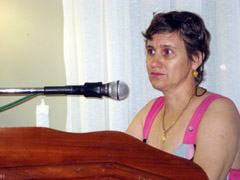 Angela Ceclia Giovanetti Teixeira, do Lar da Criana, fala sobre as atividades do Dia da Crianas, aos rotarianos |