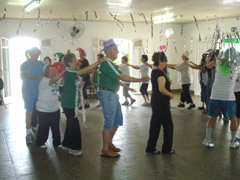 Durante dois perodos, manha e a tarde, os integrantes do Programa Caminhar com sade, depois dos exerccios de praxe e das atividades bsicas de aquecimento, alongamento e condicionamento fsico, promoveram os bailes com roupas caractersticas, ornamentao prpria ao som de marchinhas carnavalescas atuais e as tradicionais. Foram bailes que alm de promoveram uma atividade fsica diferente, fortaleceram o companheirismo, disse Ana Teruel, uma das coordenadoras das atividades do programa. Sem contar a alegria que foi contagiante, reforou a professora Ansia Marinho que ficou responsvel pela animao do grupo.