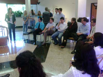 Depois de visitarem pela manha as dependncias das Industrias Jacto, na cidade de Pompia, e a tarde estarem com o pessoal do Programa Empreender, no perodo da noite os indianos promoveram uma palestra sobre Tecnologia da Informao (TI), nas dependncias do Univem para os universitrios e alguns empresrios. A proposta foi fazer com que os empreendedores tivessem acesso a um conhecimento mais especfico de um grande centro de informtica, comentou Giane Faccin que colaborou na traduo. A partir de agora aquele que se envolver mais profissionalmente com os indianos, daro prosseguimento aos contatos atravs do departamento de Relaes Internacionais da Acim, disse a coordenadora do Programa Empreender em Marlia. |