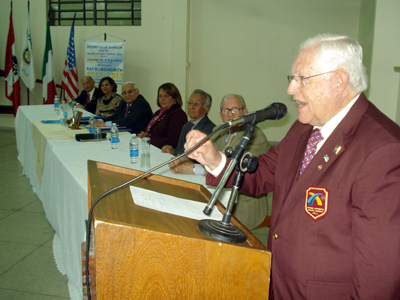 O Governador do Distrito 4510 do Rotary International foi enftico no pronunciamento que fez ao valorizar as presenas dos rotarianos veteranos e dos mais recentes. Nossa organizao prima pelo trabalho em conjunto nas adversidades, comentou Joamyr Castro ao parabenizar os rotarianos mais antigos do clube pelo trabalho que realizam a vrias dcadas e a iniciativa dos mais novos em participarem de uma organizao como o Rotary. na cadncia da experincia dos rotarianos mais antigos com o entusiasmo dos mais novos que as energias se equilibram, e as aes rotrias passam a ser representativas, elogiou o dirigente.