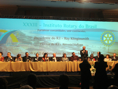 O presidente do Rotary International, o norte-americano Ray Klinginsmith, surpreendeu a todos no encerramento do 33 Instituto Rotary Brasil, realizado na cidade de Santos, no litoral paulista, quando falou abertamente sobre o redistramento que ocorrer no ano que vem e as possibilidades de mudana geogrfica dos distritos do Brasil, alm de colocar-se a disposio para responder qualquer tipo de pergunta da platia presente no Mendes Convention Center, quando 483 Governadores de distritos rotrios estiveram presentes, num total de 1.212 rotarianos do Brasil e do exterior. Foi algo surpreendente pouco visto em eventos em que o Presidente de Rotary International participa, disse surpreso o Diretor de Rotary International, Antnio Hallage ao considerar a atitude como fantstica. Isto demonstra o quanto ele esteve envolvido no evento, falou.