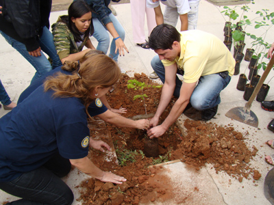 O plantio de rvores aconteceu com diretores, alunos e convidados da escola |