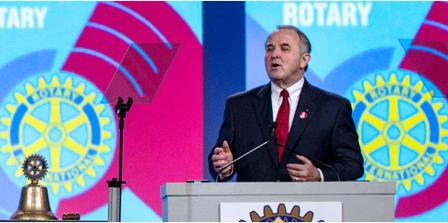 O presidente eleito do Rotary International, Ron Burton, explica sobre o futuro lema rotrio |